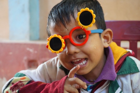 Step 2: The children who have a visual impairment or other eye problems are taken to a local optician eyeglass fitting or to the Mandalay